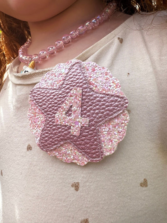 Shimmering celebration handcrafted Glitter Badge with personalisation, make their birthday pop