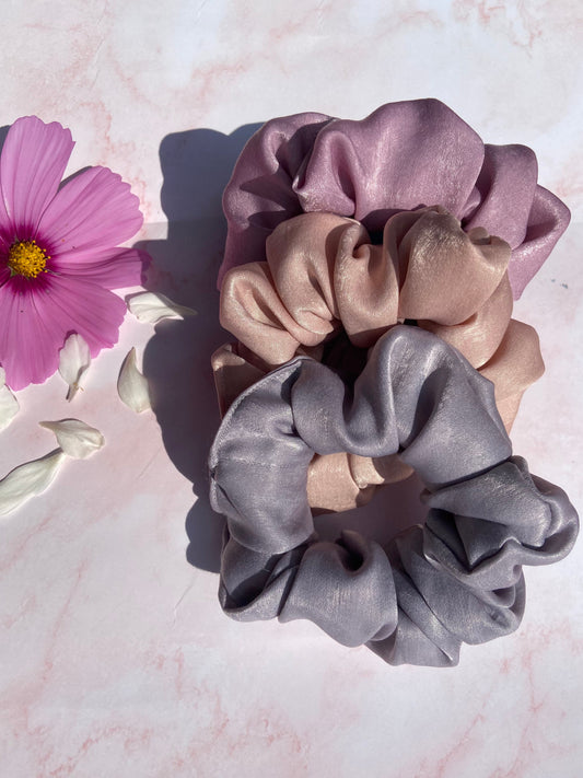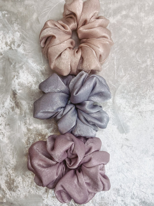 Set of 3 large Scrunchies mauve, dusky pink and grey