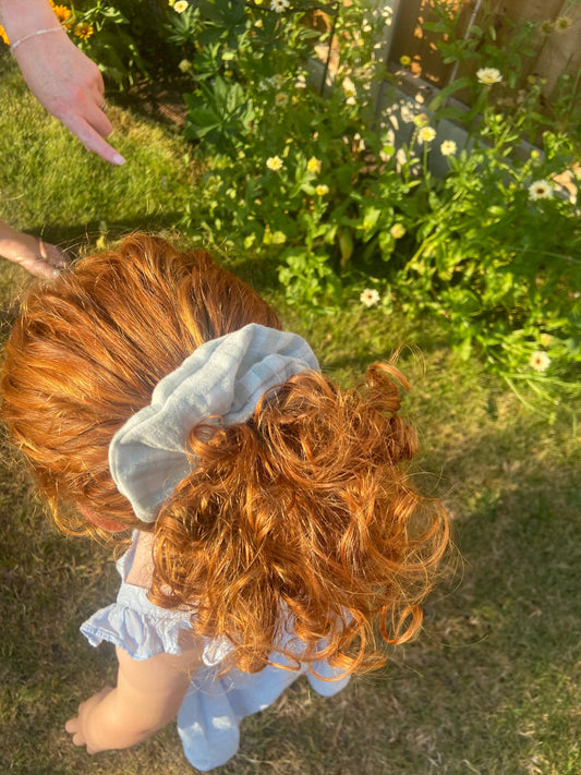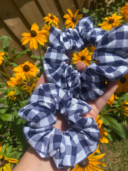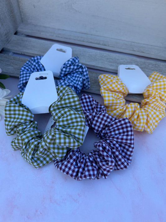 Soft green check scrunchies in a choice of 2 sizes medium and large