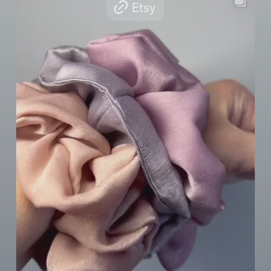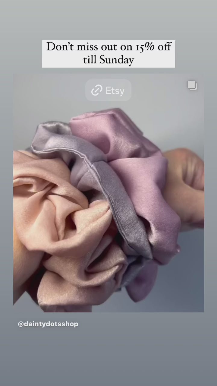 Get ready for some stylish and playful hairdos with our Set of 3 handmade scrunchies for children! Made from soft and luxurious crushed silk velvet, these mauve, dusky pink, and grey scrunchies will elevate any hairstyle. Perfect as a gift set for your little ones.